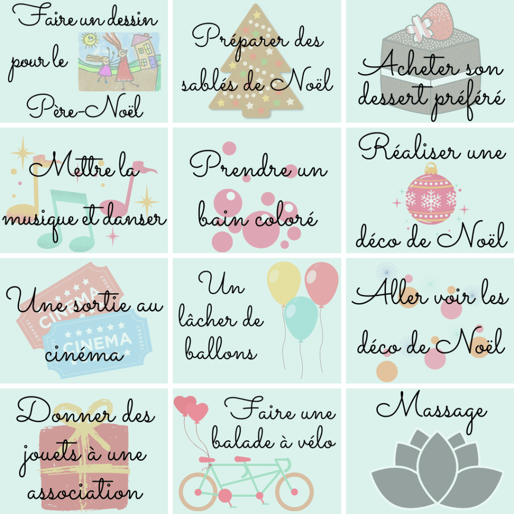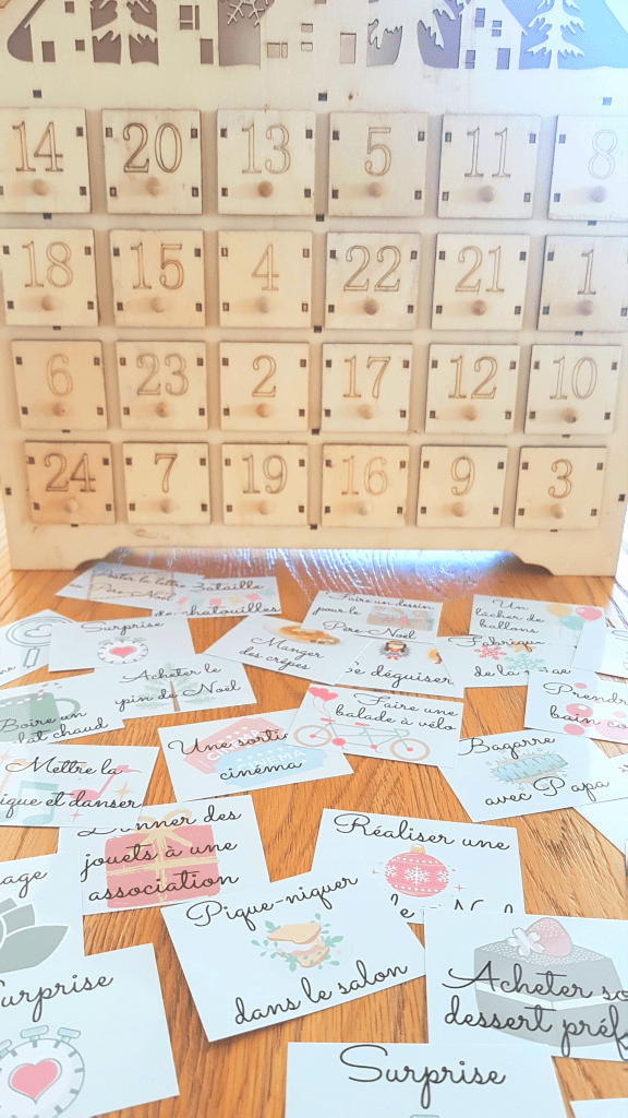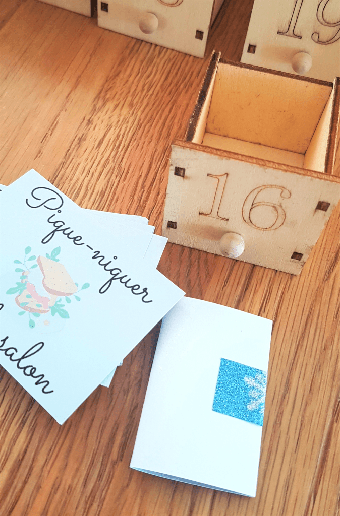 Chaque année, je réalise un calendrier de l’Avent sur mesure qui comprend des activités en famille, des gourmandises et quelques cadeaux. Cette fois, ils seront deux à ouvrir une case chaque jour puisqu’Hector voudra participer, c’est certain. Il se pourrait qu’il veuille ouvrir toutes les cases d’un coup mais ça, c’est une autre histoire 😅