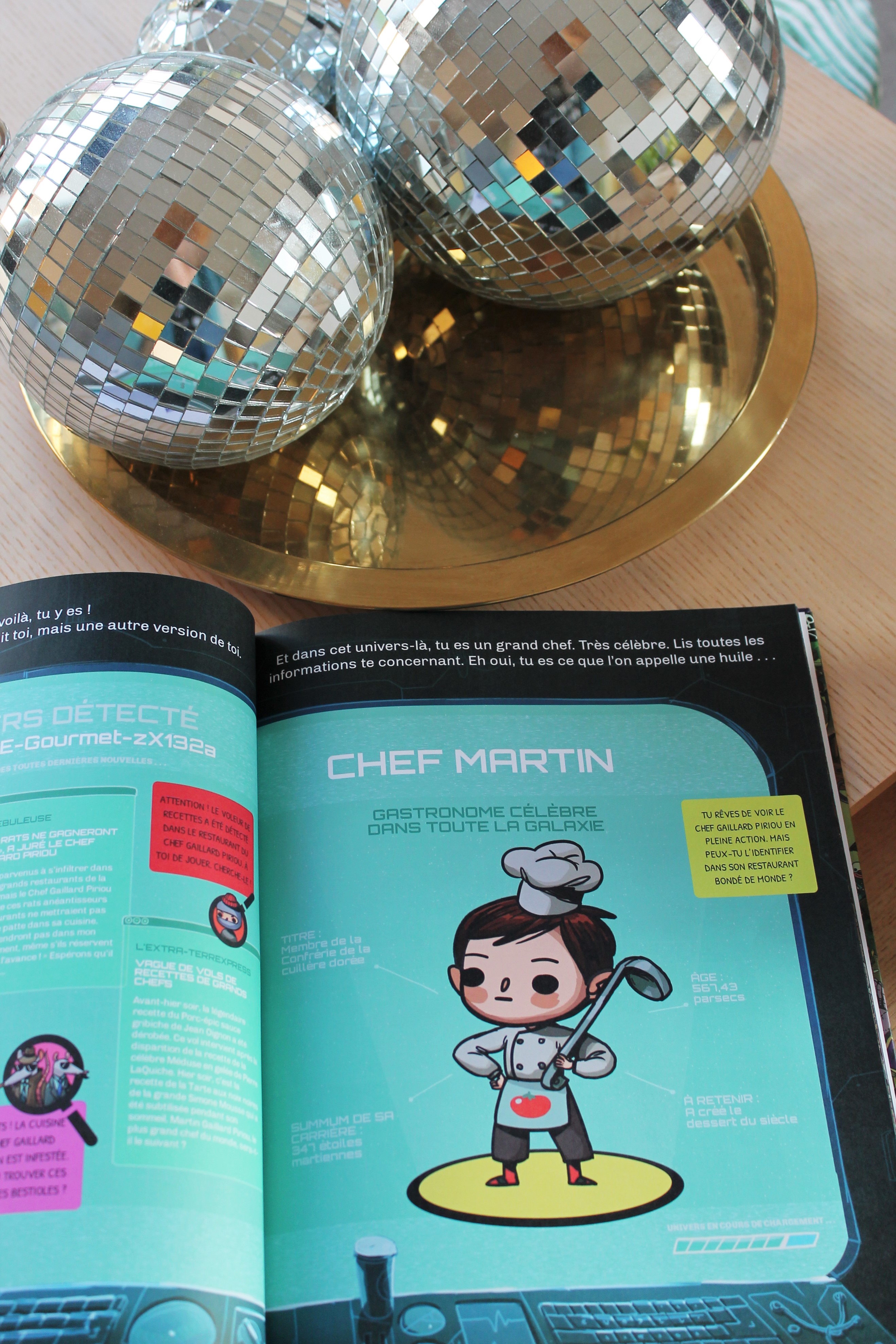 Mais pour Martin, 6 ans, je recherchais un livre personnalisé de « grand ». Et je suis donc tombée sur « Où es-tu ? » dont le concept est génial ! C’est un cherche et trouve personnalisé. Le personnage principal, c’est… son enfant. On choisit la couleur de peau, la coiffure, la couleur des cheveux… et puis ce personnage va arborer 6 personnalités. On retrouve son enfant dans 6 univers différents. Il n’y a plus qu’à recherche Martin le grand chef, Martin la super star… à travers les pages. Mais il y a aussi tout un tas d’objets et de personnages à retrouver. Et je peux vous dire qu’on en cherche encore certains (et on est super fort, ne vous méprenez pas !)
